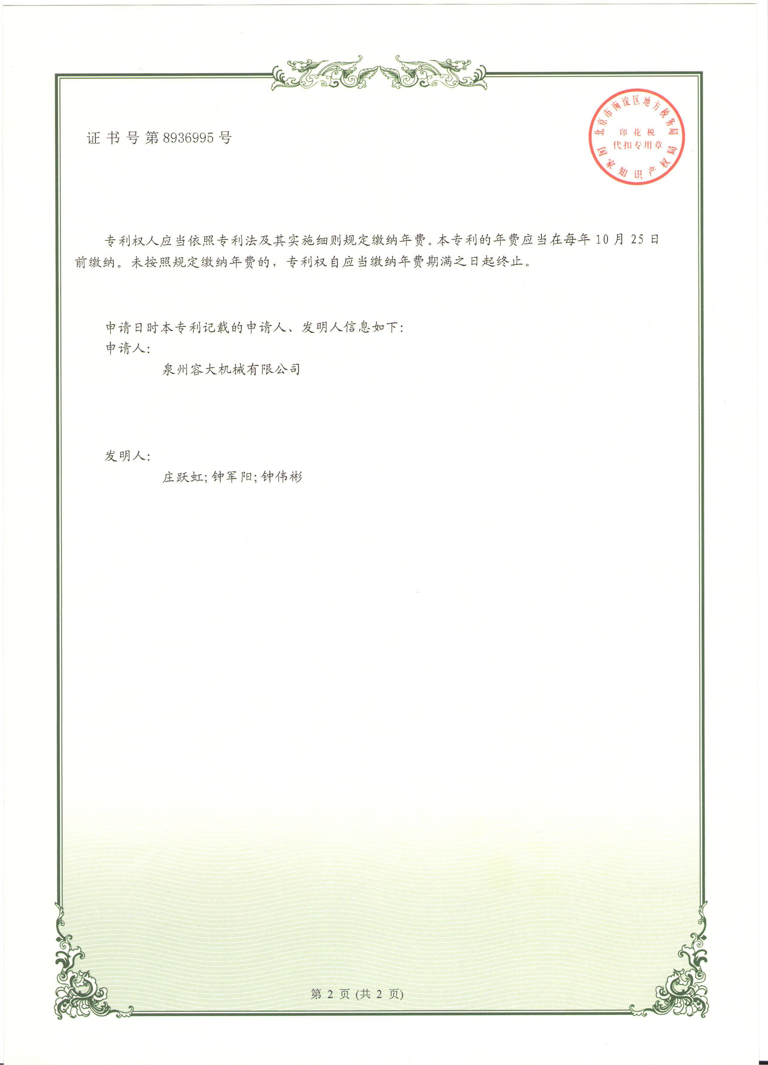 您的位置: 泉州容大機械有限公司 > 專利證書 > 生活垃圾分選系統(tǒng)